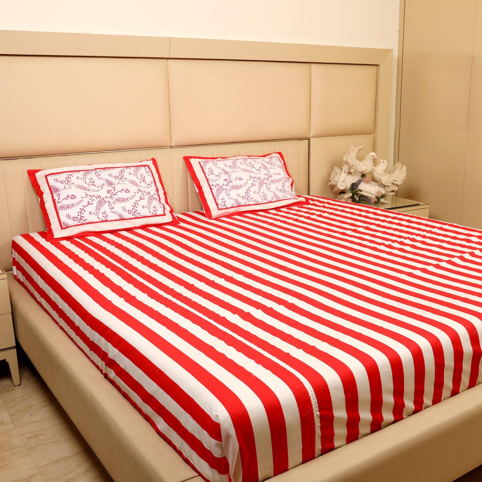 Transform your bedroom into a vibrant retreat with the Candy Cane bedsheet set. Featuring bold red and white stripes in premium cotton, this collection delivers both style and comfort.